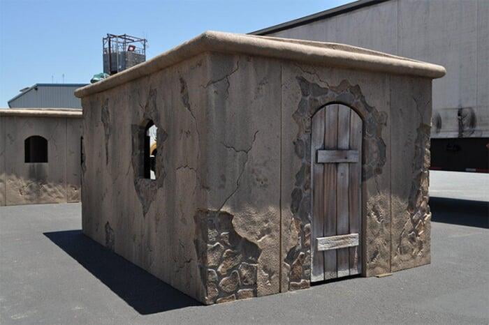 The “Live Fire” RHU is designed with safety in mind for live fire maneuvers at designated training areas. As with the standard RHU, the live fire version can be manufactured to replicate any contemporary operating environment in the world and is easy to move and assemble. The primary difference is there is no framing structure. This allows projectiles to pass through the RHU in its natural trajectory with zero ballistic deflection.