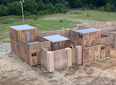 The “Live Fire” RHU is designed with safety in mind for live fire maneuvers at designated training areas. As with the standard RHU, the live fire version can be manufactured to replicate any contemporary operating environment in the world and is easy to move and assemble. The primary difference is there is no framing structure. This allows projectiles to pass through the RHU in its natural trajectory with zero ballistic deflection.