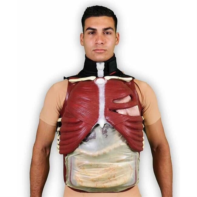 The Human Worn Partial Task Surgical Simulator (a.k.a. “Cut Suit”) is the most realistic way to simulate the look, feel and smell effects of severe traumatic events on a live human, allowing first responders and physicians to safely perform real procedures – from the point of injury (POI), to treatment enroute, and transition of care to surgical intervention.